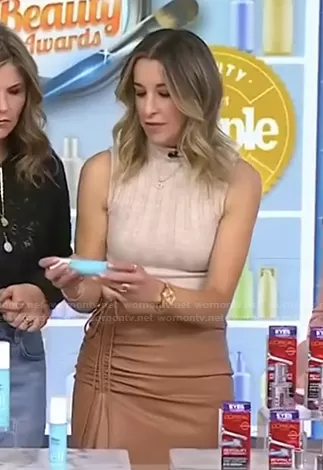 on Today on NBC was spotted wearing this sleeveless knit top and leather skirt on Today on Nov 17 2021's episode. 's Top is the Miranda Wool Sleeveless Mock Neck Top by Anine Bing . 's Skirt is the Orly Gathered Faux Leather Midi Skirt by A.L.C..