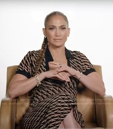 on Today on NBC was spotted wearing this beige geometric print dress on Today on Nov 18 2021's episode. 's Dress is the Flocked Stretch-Mesh Midi Dress by David Koma.