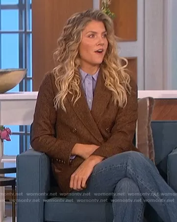 Amanda Kloots on The Talk on CBS was spotted wearing this brown herringbone blazer on The Talk on Nov 09 2022's episode. Amanda's Blazer is the Bristol Blazer by J. Crew.