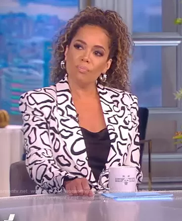 Sunny Hostin on The View on ABC was spotted wearing this giraffe print blazer on The View on Nov 19 2021's episode. Sunny's Blazer is the Giraffe Print Blazer by Sergio Hudson.