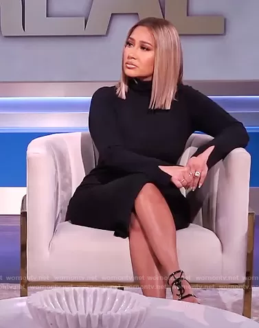 Adrienne Houghton on The Real on BETher was spotted wearing this black turtleneck dress on The Real on Nov 19 2021's episode. Adrienne's Dress is the Vik Turtleneck Dress by AFRM.