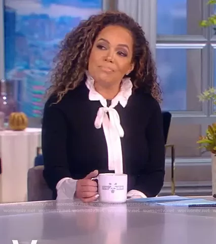 Sunny Hostin on The View on ABC was spotted wearing this striped satin skirt on The View on Nov 22 2021's episode. Sunny's Sweater is the Cornelia Wool & Silk-Blend Tieneck Sweater by Alice + Olivia . Sunny's Skirt is the Paneled satin and cloqué maxi skirt by Alice + Olivia.
