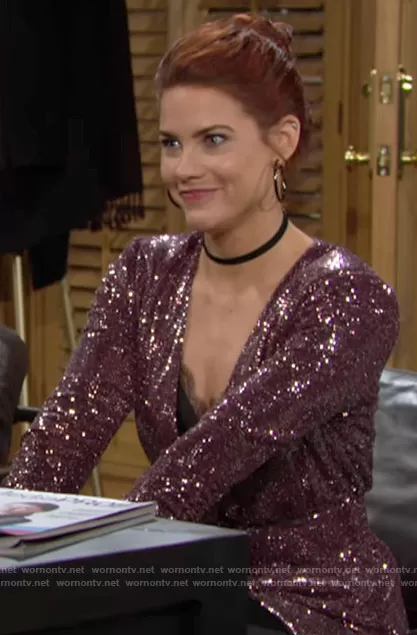 Sally Spectra (played by Courtney Hope) on The Young and the Restless on CBS was spotted wearing this pink sequin jacket on The Young and the Restless on Nov 22 2021's episode. Sally's Jacket is the Sequin Crush-Sleeve Belted Jacket by Badgley Mischka.