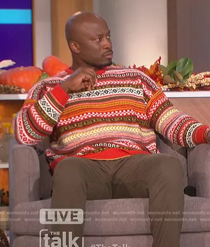 Knitted Fair Isle Sweater by ASOS worn by Akbar Gbajabiamila on The Talk