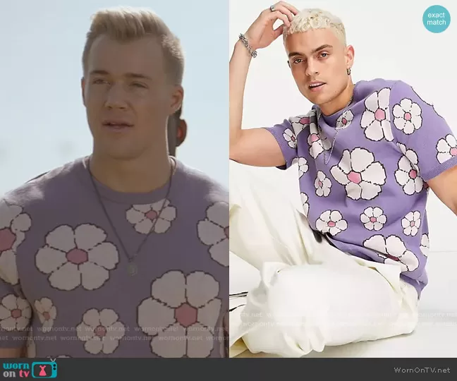 JJ Parker (played by Hunter Clowdus) on All American on CWTV was spotted wearing this purple floral tee on All American on episode 'Can It All Be So Simple' (4x05) in Nov 2021. JJ's Shirt is the Knitted T-shirt with Floral Design in purple by ASOS.