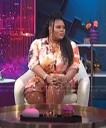 Nina Parker on E! News on E! was spotted wearing this printed shirtdress on E! News Nightly Pop on Nov 23 2021's episode. Nina's Dress is the Trendy Plus Size Printed Satin Tie-Front Shirtdress by Nina Parker.