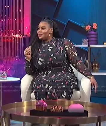 Nina Parker on E! News on E! was spotted wearing this printed mesh dress on E! News Nightly Pop on Nov 24 2021's episode. Nina's Dress is the Trendy Plus Size Printed Mesh Bodycon Dress by Nina Parker.
