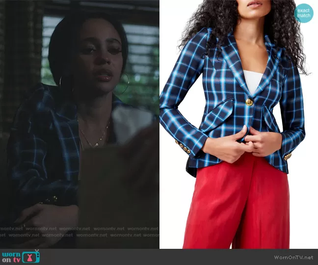 Toni Topaz (played by Vanessa Morgan) on Riverdale on The CW was spotted wearing this blue plaid blazer on Riverdale on episode 'Ghost Stories' (6x02) in Nov 2021. Toni's Blazer is the One Button Blazer by Smythe.