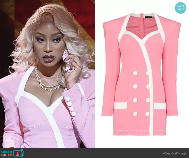 Button-detailed two-tone crepe mini dress by Balmain worn by Lauren Rice (Pepi Sonuga) on Queens