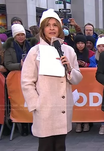 Hoda Kotb on Today on NBC was spotted wearing this beige coat on Today on Dec 15 2021's episode. Hoda's Coat is the Villa coat in Hthr Sand by J. Crew.
