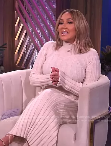 Adrienne Houghton on The Real on BETher was spotted wearing this ivory ribbed midi dress on The Real on Nov 24 2021's episode. Adrienne's Dress is the Shawn Dress by Anine Bing.