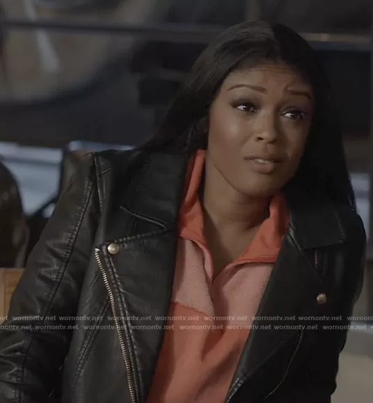 Ryan Wilder (played by Javicia Leslie) on Batwoman on The CW was spotted wearing this leather moto jacket on Batwoman on episode 'Meet Your Maker' (3x09) in Jan 2022. Ryan's Jacket is the Meant to Be Moto Jacket with Removable Hood by Blank NYC.