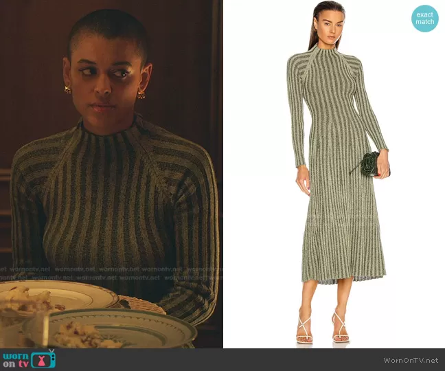 Julien Calloway (played by Jordan Alexander) on Gossip Girl on HBO Max was spotted wearing this green ribbed knit dress on Gossip Girl on episode 'Once Upon a Time in the Upper West' (1x07) in Nov 2021. Julien's Dress is the Natural Stripe Rib Long Sleeve Dress by Dion Lee.