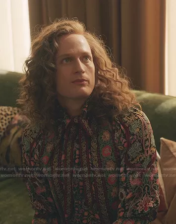 (played by ) on Gossip Girl on HBO Max was spotted wearing this floral tie neck shirt on Gossip Girl on episode 'Blackberry Narcissus' (1x09) in Nov 2021. 's Top is the Reilly Floral Ruffle Tie Neck Top by Alice + Olivia.