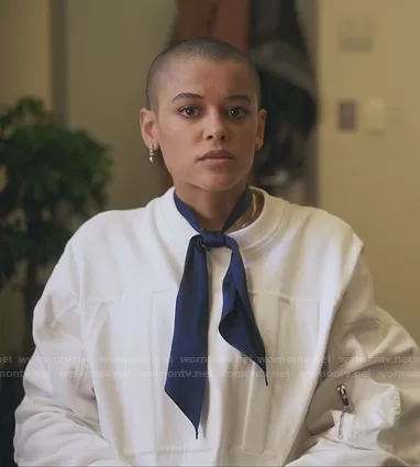 Julien Calloway (played by Jordan Alexander) on Gossip Girl on HBO Max was spotted wearing this white pocket-sleeve sweatshirt on Gossip Girl on episode 'Blackberry Narcissus' (1x09) in Nov 2021. Julien's Sweater is the VLTN-embossed Sweatshirt by Valentino.