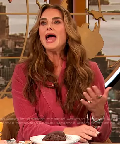 on The Drew Barrymore Show on CBS was spotted wearing this Brooke Shields’ pink corduroy blazer on The Drew Barrymore Show on Nov 30 2021's episode. 's Blazer is the Peak-lapel Double-breasted Blazer by Etro.