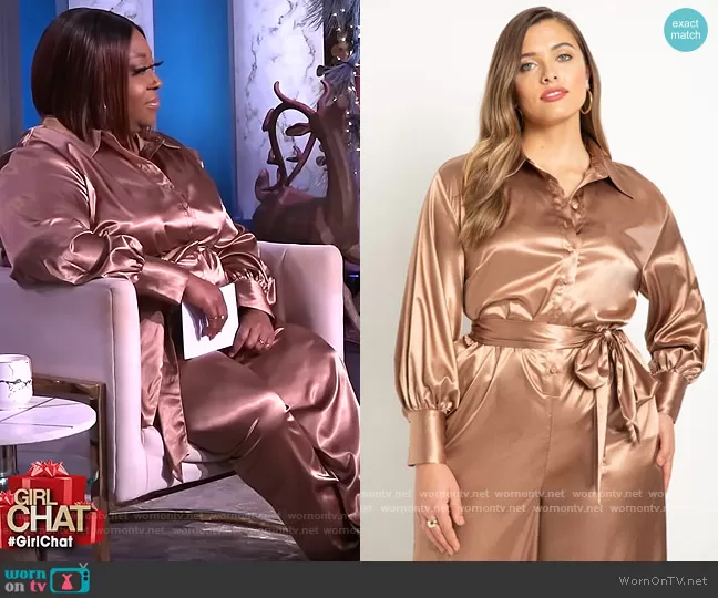 Satin Wide Leg Button Front Jumpsuit by Eloquii worn by Loni Love on The Real