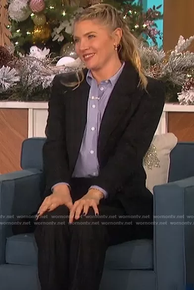 Amanda Kloots on The Talk on CBS was spotted wearing this plaid blazer and pants on The Talk on Dec 01 2021's episode. Amanda's Blazer is the Willa Blazer by J. Crew . Amanda's Pants is the Bi-strech wool Pants by J. Crew.