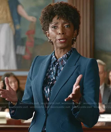 (played by ) on Bull on CBS was spotted wearing this teal green suit and dot print shirt on Bull on episode 'Confidence Man' (6x07) in Dec 2021. 's Top is the Chika Printed Top by Altuzarra . 's Jacket is the Leaf Crepe Jacket in 3019 by Alexander McQueen . 's Pants is the Leaf Crepe Slim Bootcut Pants in 3019by Alexander McQueen.