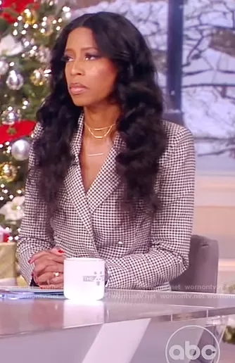 on The View on ABC was spotted wearing this Mia Loves’ check blazer on The View on Dec 07 2021's episode. 's Blazer is the Textured Double Breasted Blazer by Zara.
