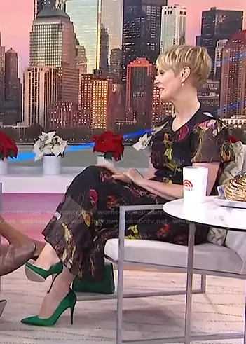 on Today on NBC was spotted wearing this Cynthia Nixon’s black floral pleated dress on Today on Dec 08 2021's episode. 's Dress is the Abstract & Floral Midi-Dress by Jason Wu.