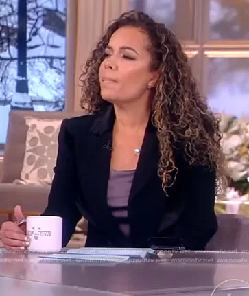 Sunny Hostin on The View on ABC was spotted wearing this black mixed media blazer on The View on Dec 08 2021's episode. Sunny's Blazer is the Mixed-Media Sculptured Blazer Jacket by Sergio Hudson.