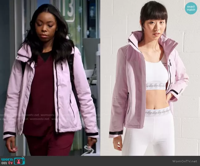 Vanessa Taylor (played by Asjha Cooper) on Chicago Med on NBC was spotted wearing this pink jacket on Chicago Med on episode 'Secret Santa Has a Gift for You' (7x09) in Dec 2021. Vanessa's Jacket is the Hurricane Jacket in Orchid by Superdry.