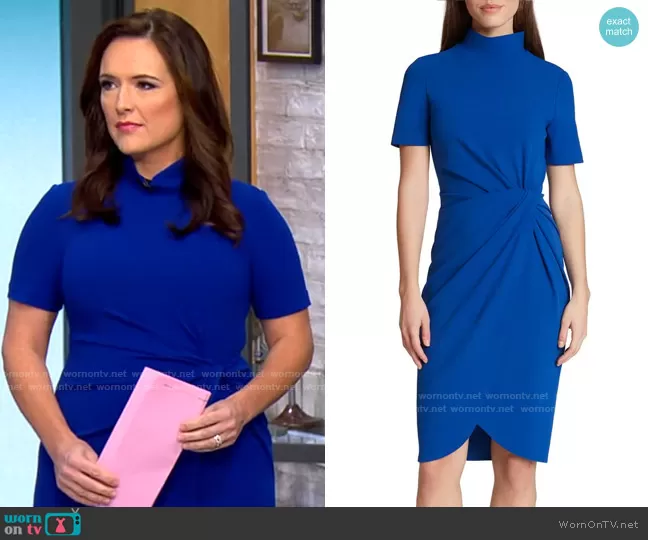 Nikki Battiste on CBS Mornings on CBS was spotted wearing this blue twist front dress on CBS Mornings on Dec 09 2021's episode. Nikki's Dress is the Mock Neck Stretch Crepe Sheath Dress by Tahari .
