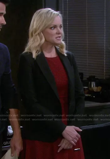 Belle Brady (played by Martha Madison) on Days of our Lives on Peacock was spotted wearing this red houndstooth belted dress on Days of our Lives on Dec 10 2021's episode. Belle's Dress is the Belted Houndstooth A-Line Dress by Calvin Klein.