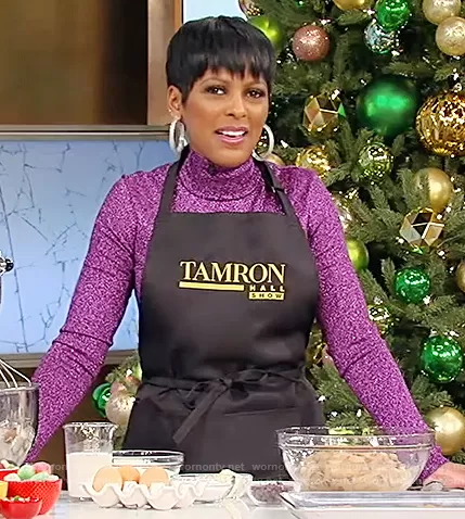 Tamron Hall on Tamron Hall Show on ABC was spotted wearing this purple metallic turtleneck sweater on Tamron Hall Show on Dec 10 2021's episode. Tamron's Sweater is the Metallic turtleneck sweater by Stella McCartney.