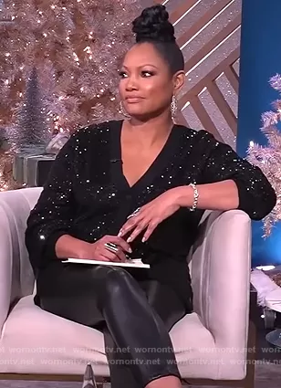 Garcelle Beauvais on The Real on BETher was spotted wearing this black sequin cardigan on The Real on Dec 10 2021's episode. Garcelle's Sweater is the Oversized Sequin Cardigan by INC International Concepts.