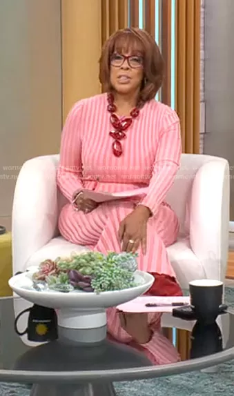 Gayle King on CBS Mornings on CBS was spotted wearing this pink ribbed midi dress on CBS Mornings on Feb 28 2023's episode. Gayle's Dress is the Gramm Dress by Altuzarra .