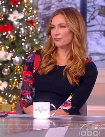 on The View on ABC was spotted wearing this black floral sheath dress on The View on Dec 13 2021's episode. 's Dress is the Prism Floral-Printed V-Neck Sheath Dress by Black Halo.