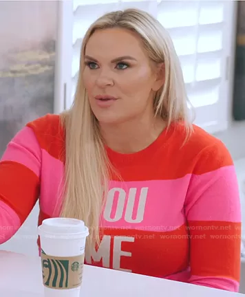 Heather Gay on The Real Housewives of Salt Lake City on Bravo was spotted wearing this red and pink striped sweater on The Real Housewives of Salt Lake City on episode 'Fair Weather Friends' (2x13) in Dec 2021. Heather's Sweater is the You Me Ski Cashmere Intarsia Sweater by Chinti and Parker.