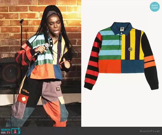 Naomi (played by Teshi Thomas) on Queens on ABC was spotted wearing this striped crop top and pants on Queens on episode 'God's Plan' (1x08) in Dec 2021. Naomi's Top is the Crop Stripe Panel Rugby Top by Cross Colours . Naomi's Pants is the Patchwork Cargo Pants by Aelfric Eden.