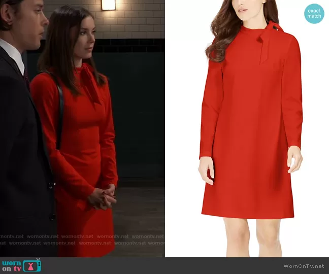 Tie-Neck Scuba Crepe Dress by Calvin Klein worn by Willow Tait (Katelyn MacMullen) on General Hospital