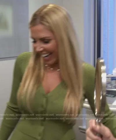 Dr. Jen Armstrong on The Real Housewives of Orange County on Bravo was spotted wearing this green knit cardigan and skirt on The Real Housewives of Orange County on episode 'Gone Guy' (16x03) in Dec 2021. Jen's Sweater is the Ailany Compact Rib Shrunken Cardigan by Jonathan Simkhai . Jen's Skirt is the Brooklyn ribbed-knit midi skirt by Jonathan Simkhai.