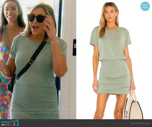 Gina Kirschenheiter on The Real Housewives of Orange County on Bravo was spotted wearing this green ruched tee dress on The Real Housewives of Orange County on episode 'Gone Guy' (16x03) in Dec 2021. Gina's Dress is the Balboa Dress by L*Space.