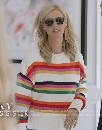 Nicky Hilton Rothschild on Paris in Love on Peacock was spotted wearing this white rainbow stripe sweater on Paris in Love on episode 'Serendipity and Secrets' (1x07) in Jan 2022. Nicky's Sweater is the Striped cotton sweater by Oscar de la Renta.