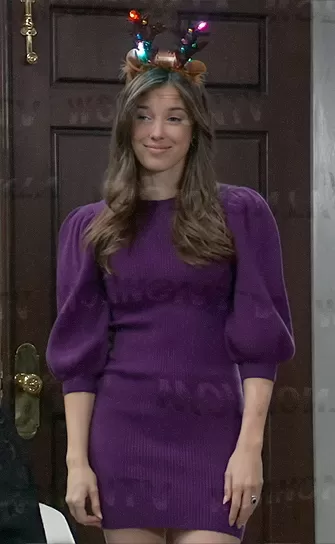 Willow's choice of the puffy sleeved dress by Zara on GH epitomizes a blend of playful design and sophisticated style. The rich purple hue of this body-fitted knit mini dress captures attention, while the puff elbow-length sleeves add a touch of whimsy and modern flair. Her decision to rewear this distinctive piece speaks to a growing appreciation for sustainable fashion choices in television styling. By choosing to showcase this dress again, Willow's character not only displays a timeless sense of style but also reflects a deeper commitment to fashion sustainability. This recurring fashion choice demonstrates how beloved garments can be versatile and enduring, challenging the often transient nature of TV fashion trends. The dress stands as a testament to the idea that style needn't be fleeting, and that repeating outfits can be both a fashionable and responsible choice. Willow's purple puff sleeve sweater dress serves as an inspiration for viewers, showing that fashion can be both fun and thoughtful, encouraging a more mindful approach to personal style.