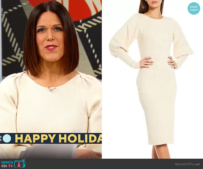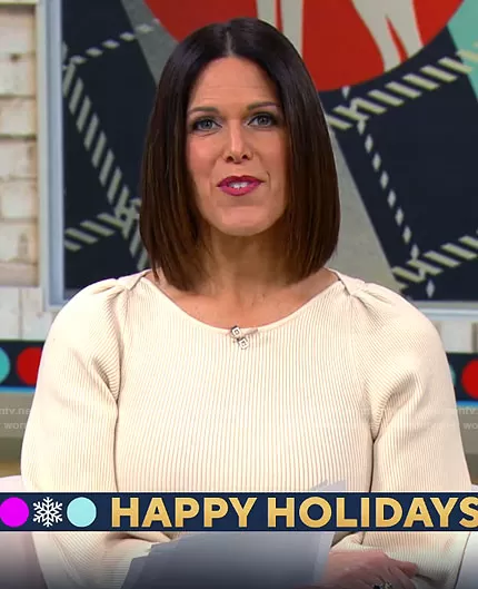 Dana Jacobson on CBS Mornings on CBS was spotted wearing this ivory ribbed sweater dress on CBS Saturday Morning on Dec 28 2021's episode. Dana's Dress is the Joss Dress by French Connection .