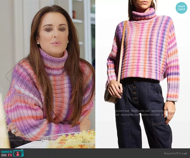 on Paris in Love on Peacock was spotted wearing this Kyle Richards’ striped turtleneck ribbed sweater on Paris in Love on episode 'Past Imperfect' (1x08) in Jan 2022. 's Sweater is the Sofia Turtleneck Sweater by Cinq a Sept.