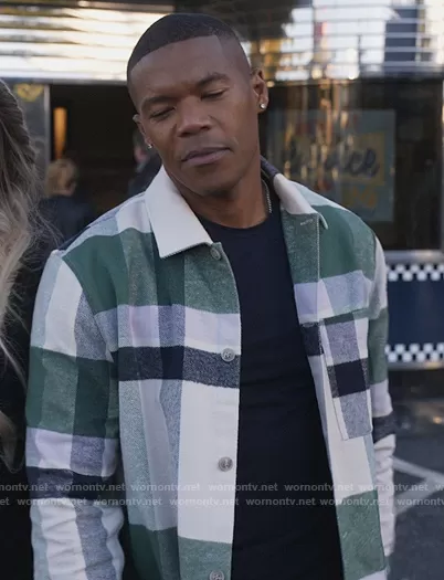 (played by ) on Queens on ABC was spotted wearing this green plaid shirt on Queens on episode 'Bars' (1x09) in Jan 2022. 's Shirt is the Checked Oversized Shirt by Cos.