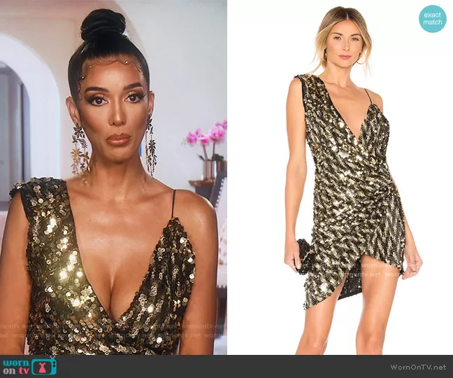 Noella Bergener on The Real Housewives of Orange County on Bravo was spotted wearing this sequined confessional dress on The Real Housewives of Orange County on episode 'A Tele-Noella' (16x05) in Jan 2022. Noella's Dress is the x REVOLVE Skye Mini Dress by Michael Costello.
