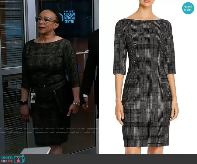 Sharon Goodwin (played by S. Epatha Merkerson) on Chicago Med on NBC was spotted wearing this grey plaid sheath dress on Chicago Med on episode 'A Little Change Might Do You Some Good' (8x10) in Jan 2023. Sharon's Dress is the Dokos Glen Plaid Sheath Dress by BOSS.