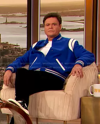 on The Drew Barrymore Show on CBS was spotted wearing this blue varsity bomber jacket on The Drew Barrymore Show on Jan 06 2022's episode. 's Jacket is the Varsity Classic Teddy Bomber Jacket by Saint Laurent.