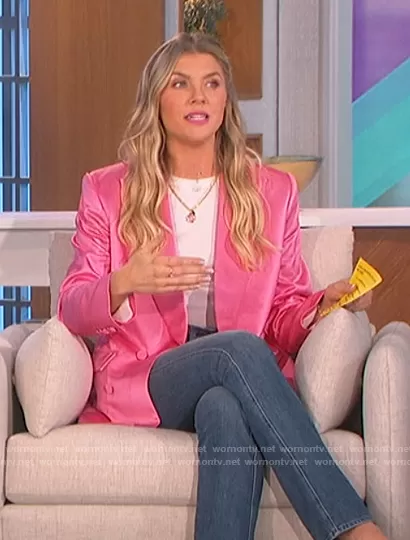 Amanda Kloots on The Talk on CBS was spotted wearing this pink satin double breasted blazer on The Talk on Jan 07 2022's episode. Amanda's Blazer is the Riley Jacket by A.L.C..
