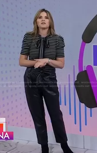 Tie Neck Stripe Cashmere Sweater by Michael Kors worn by Jenna Bush Hager on Today