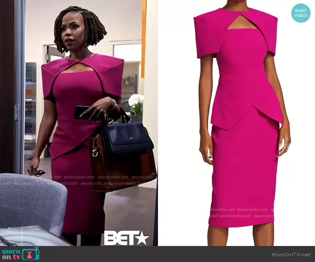 Andrea Barnes (played by Kj Smith) on Tyler Perrys Sistas on BET was spotted wearing this pink cape sleeve dress on Tyler Perrys Sistas on episode 'A Brick Wal' (4x01) in Jan 2022. Andi's Dress is the Gilda Dress by Safiyaa.