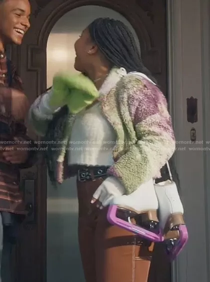 Delilah (played by Laya DeLeon Hayes) on The Equalizer on CBS was spotted wearing this tie dye teddy jacket on The Equalizer on episode 'Bout That Life' (2x09) in Jan 2022. Delilah's Jacket is the All Bundled Up Tie Dye Sherpa Jacket from Dolls Kill . Delilah's Pants is the Straight Leg Carpenter Pant in Brown by Dickies.